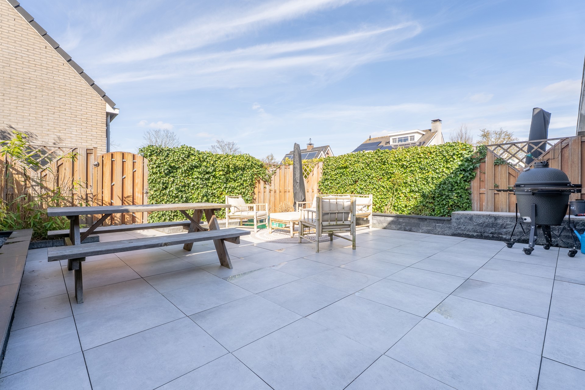 De achtertuin is verzorgd aangelegd, onderhoudsvriendelijk en beschikt over een achterom.