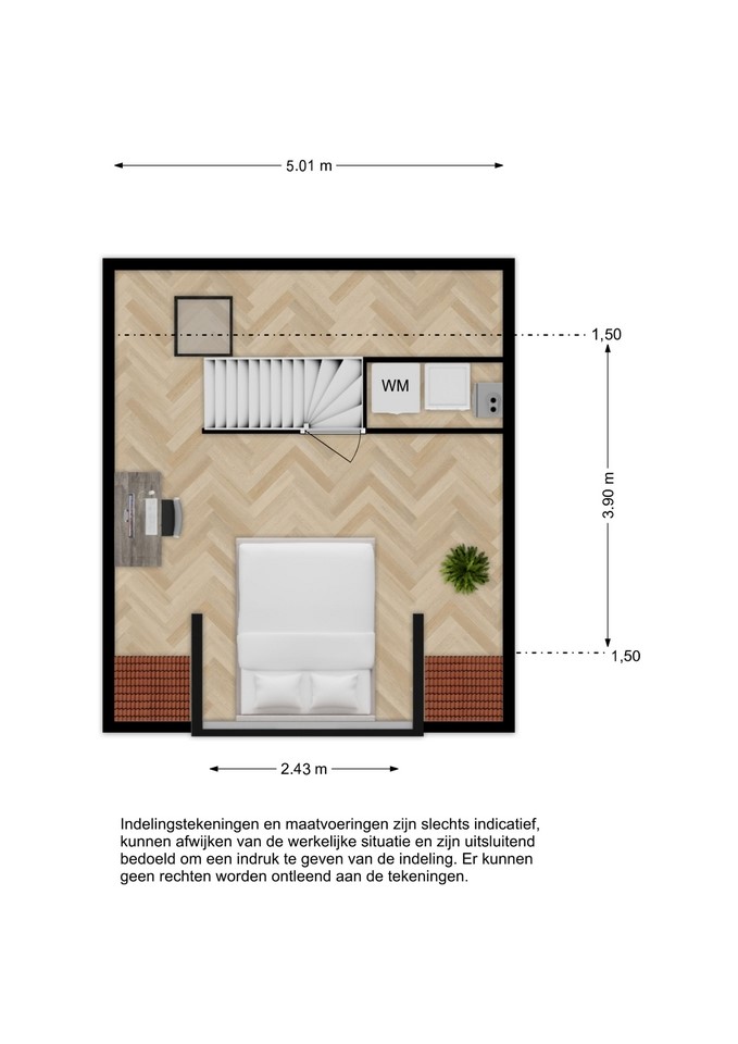 Via de vaste trap bereik je de zolderverdieping. Op deze verdieping bevinden zich de wasmachineaansluiting en de cv-opstelling. De kamer is ruim dankzij de dakkapel en het dakraam en is tevens ook de vierde slaapkamer.