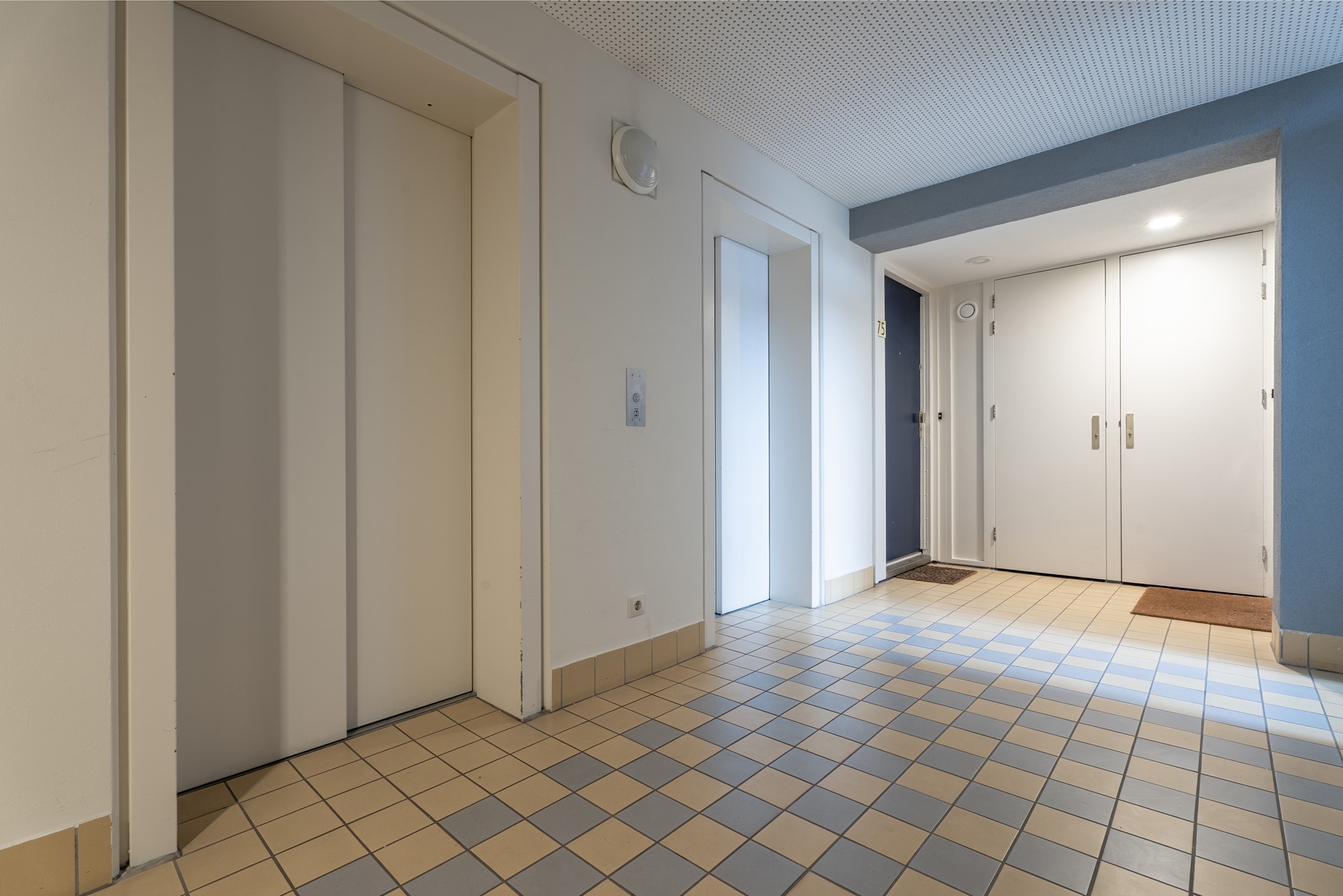 Representatieve centrale entree met bellentableau, brievenbussen en toegang tot de liften en het trappenhuis.
