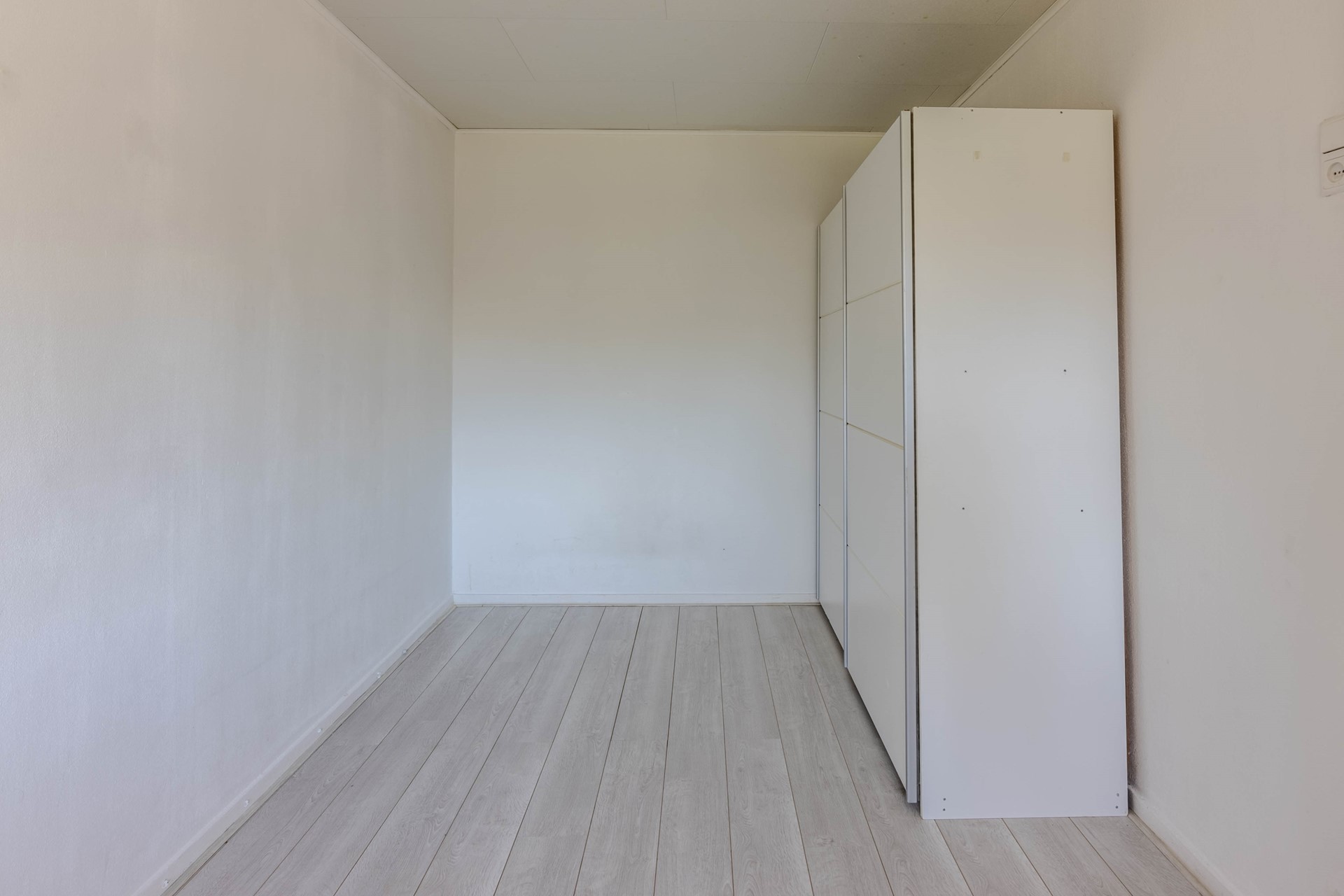 Via de woonkamer bereik je de ruime slaapkamer, met zicht op het balkon.