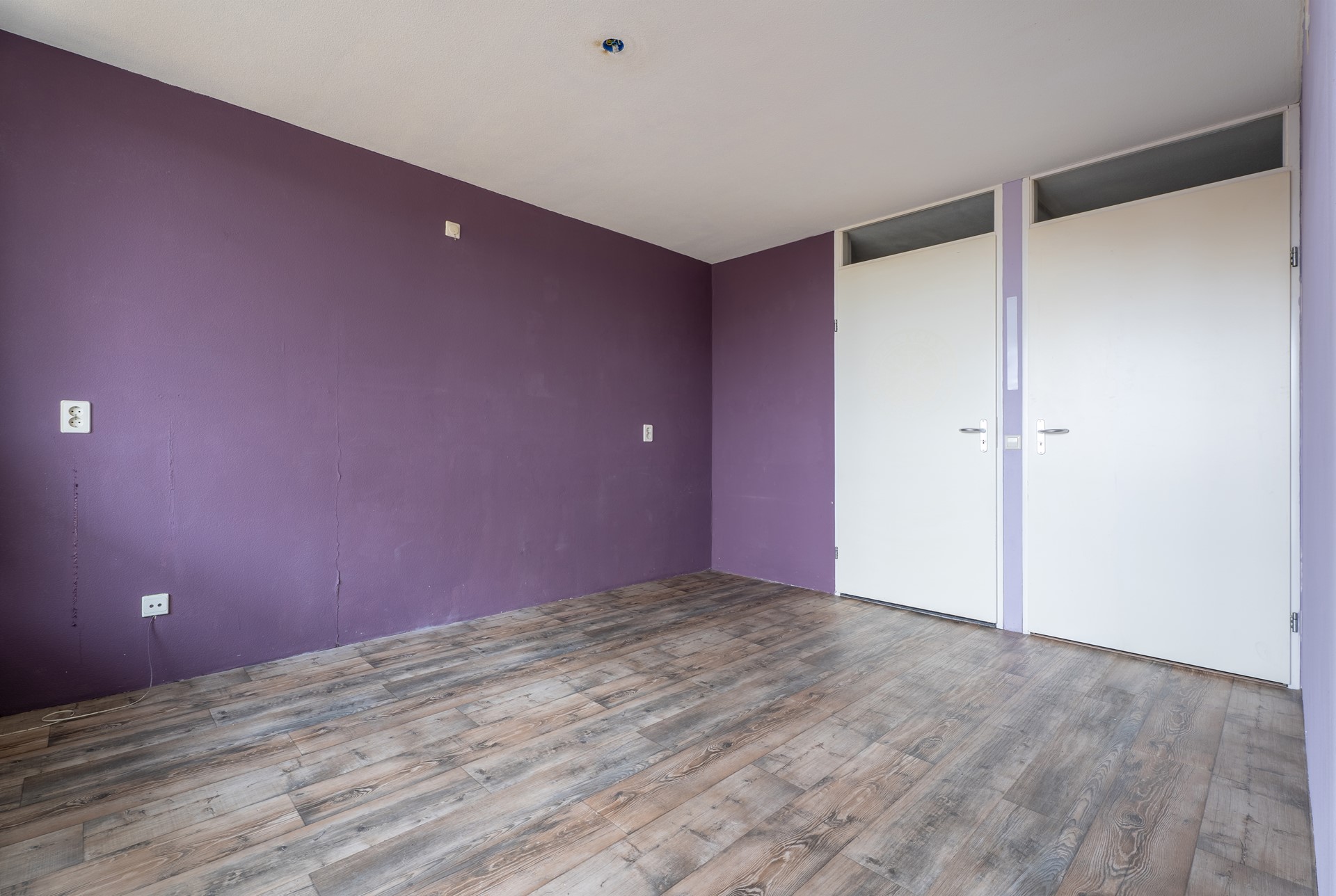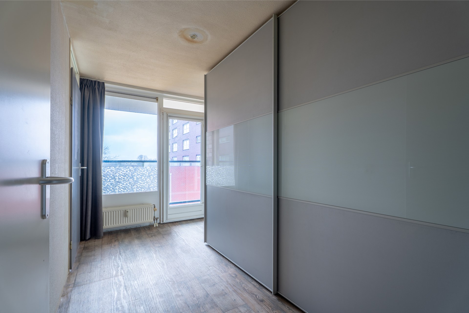 Vanuit zowel de hal als de woonkamer bereik je de eerste slaapkamer, welke directe toegang biedt tot het balkon, gelegen op het zuidoosten. Een fijne plek om heel de dag van de zon te genieten.