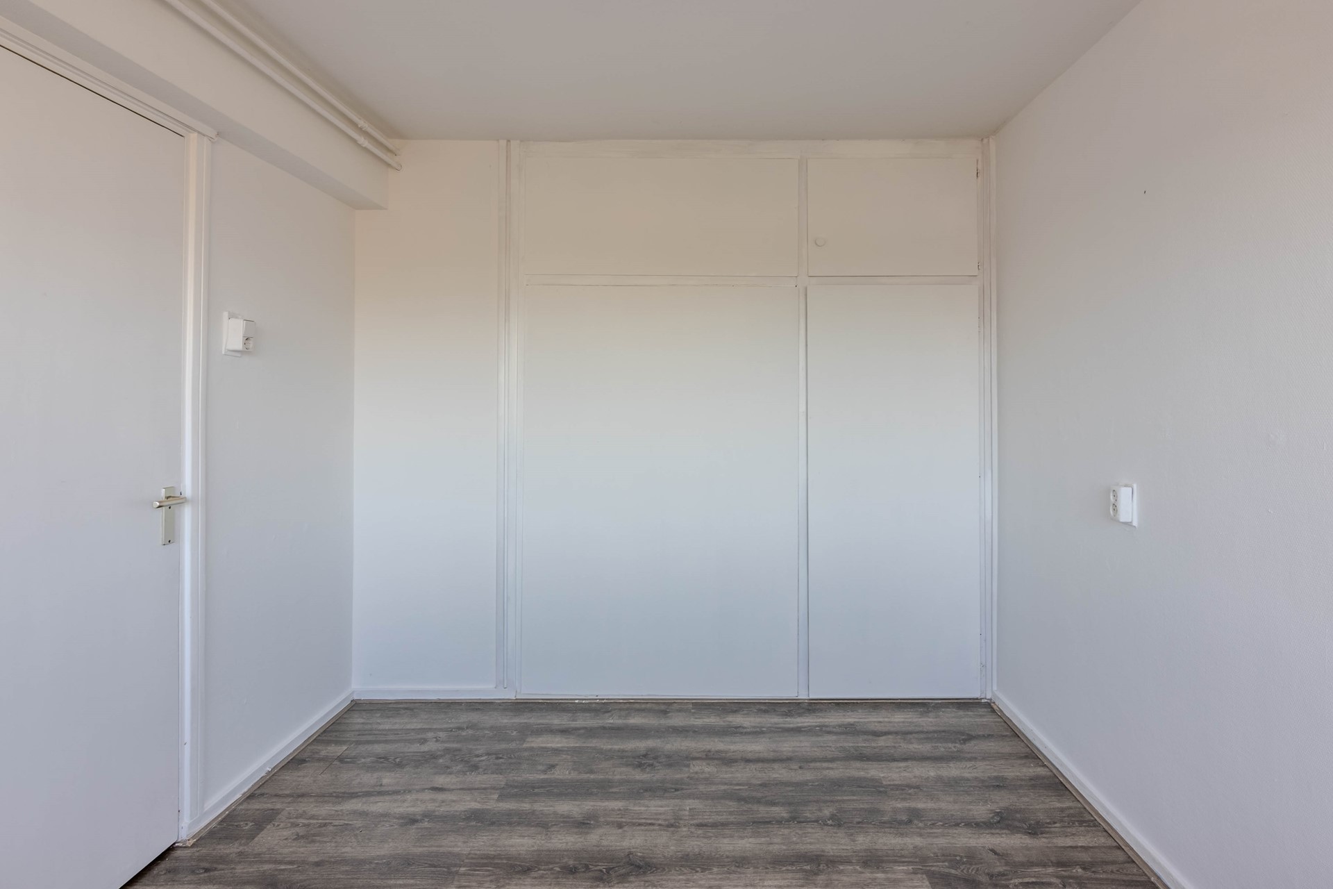 Verder biedt de hal toegang tot twee goed bemeten slaapkamers. De slaapkamer aan de achterzijde geeft direct toegang tot het inpandige balkon, wat zorgt voor een fijne, beschutte buitenruimte. Beide slaapkamers zijn bovendien voorzien van een vaste kast, ideaal voor extra bergruimte.