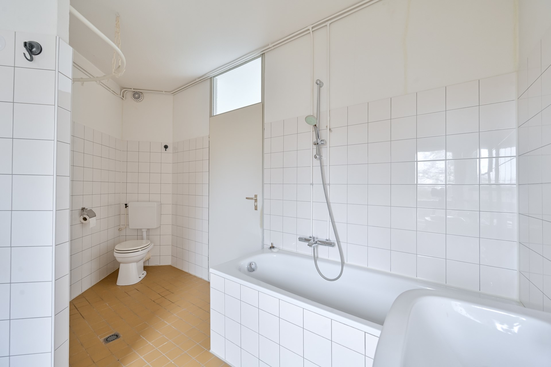 De ruime badkamer is volledig betegeld en uitgevoerd met een douche, ligbad, een staand toilet en een wastafel. Tevens bevindt zich hier de aansluiting voor de wasmachine.