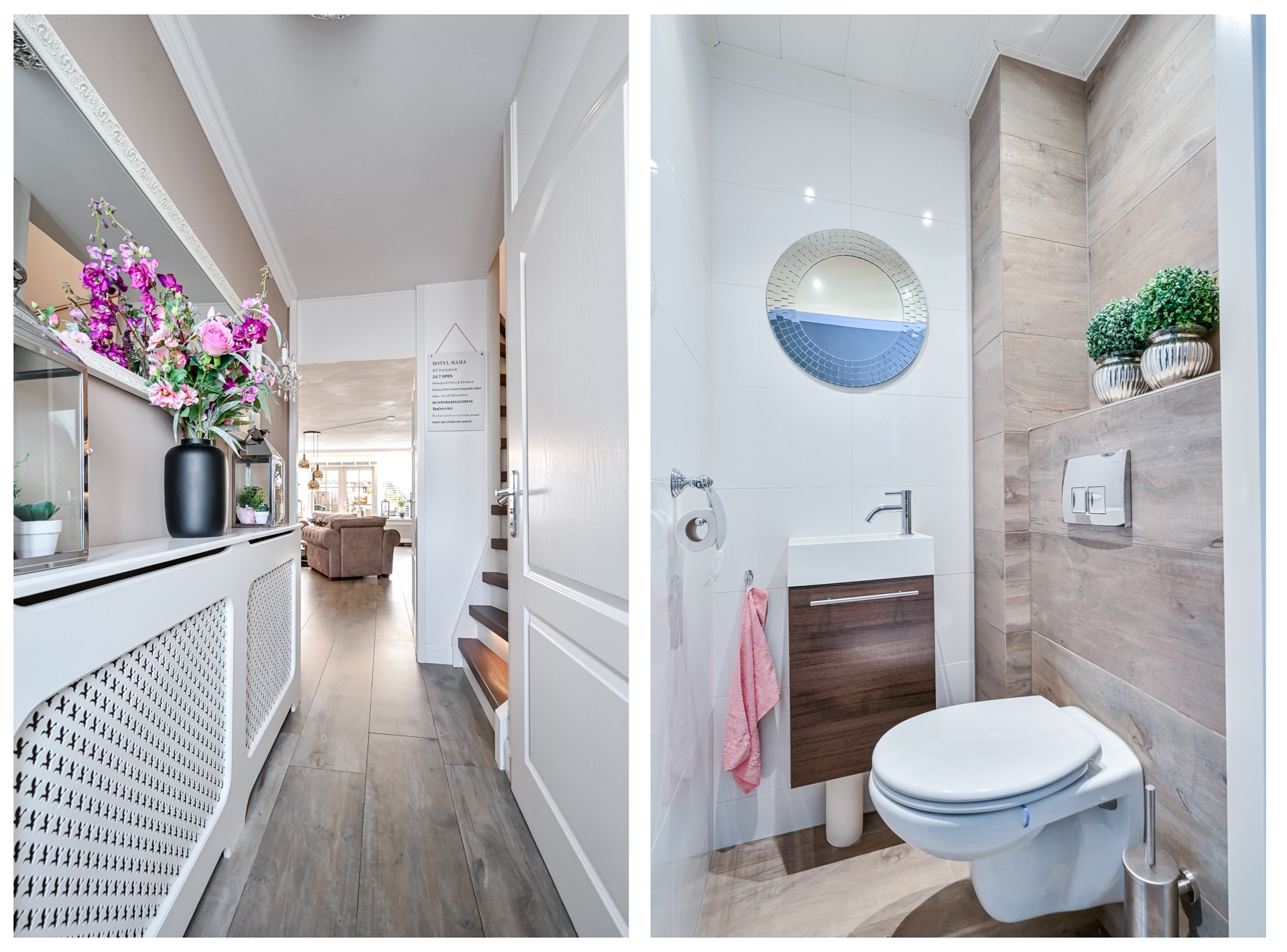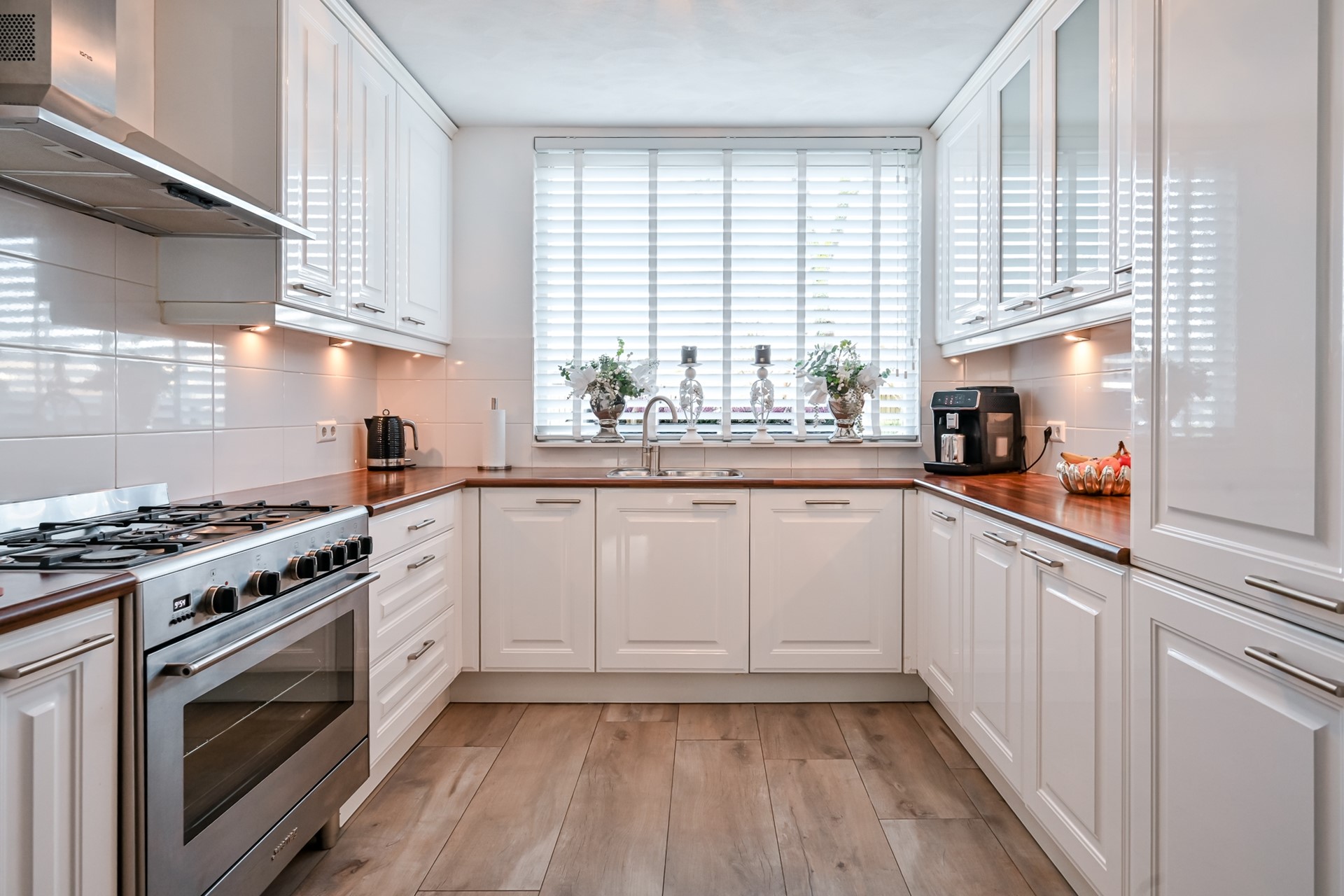 De volledige begane grond is afgewerkt met een keramische tegelvloer met vloerverwarming en een renovlies wandafwerking.