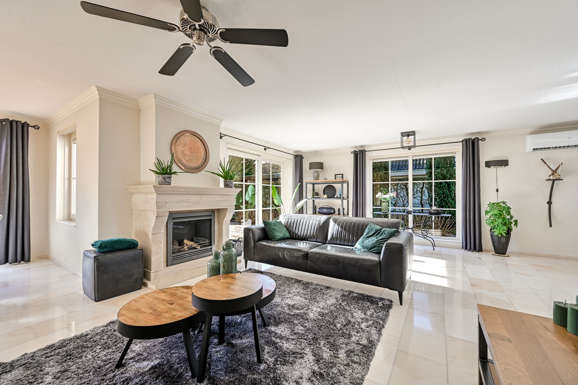 De volledige begane grond is afgewerkt met een marmeren vloer en voorzien van comfortabele vloerverwarming. In de woonkamer bevindt zich daarnaast een airco-installatie die zowel kan koelen als verwarmen. De sfeervolle gashaard maakt het geheel compleet en zorgt voor warme, gezellige avonden.
