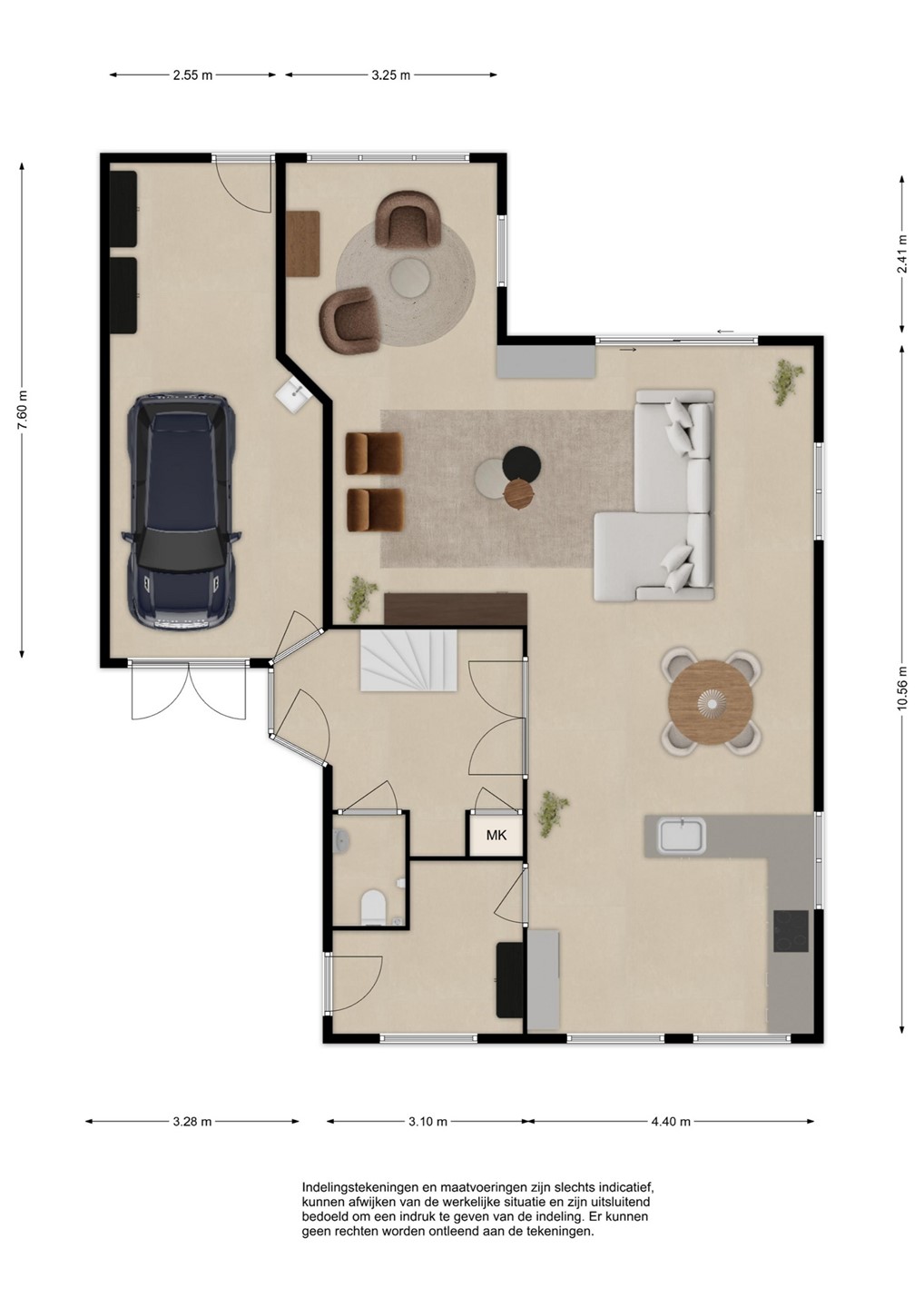In de hal bevinden zich het toilet, de meterkast en de directe toegang tot de garage.