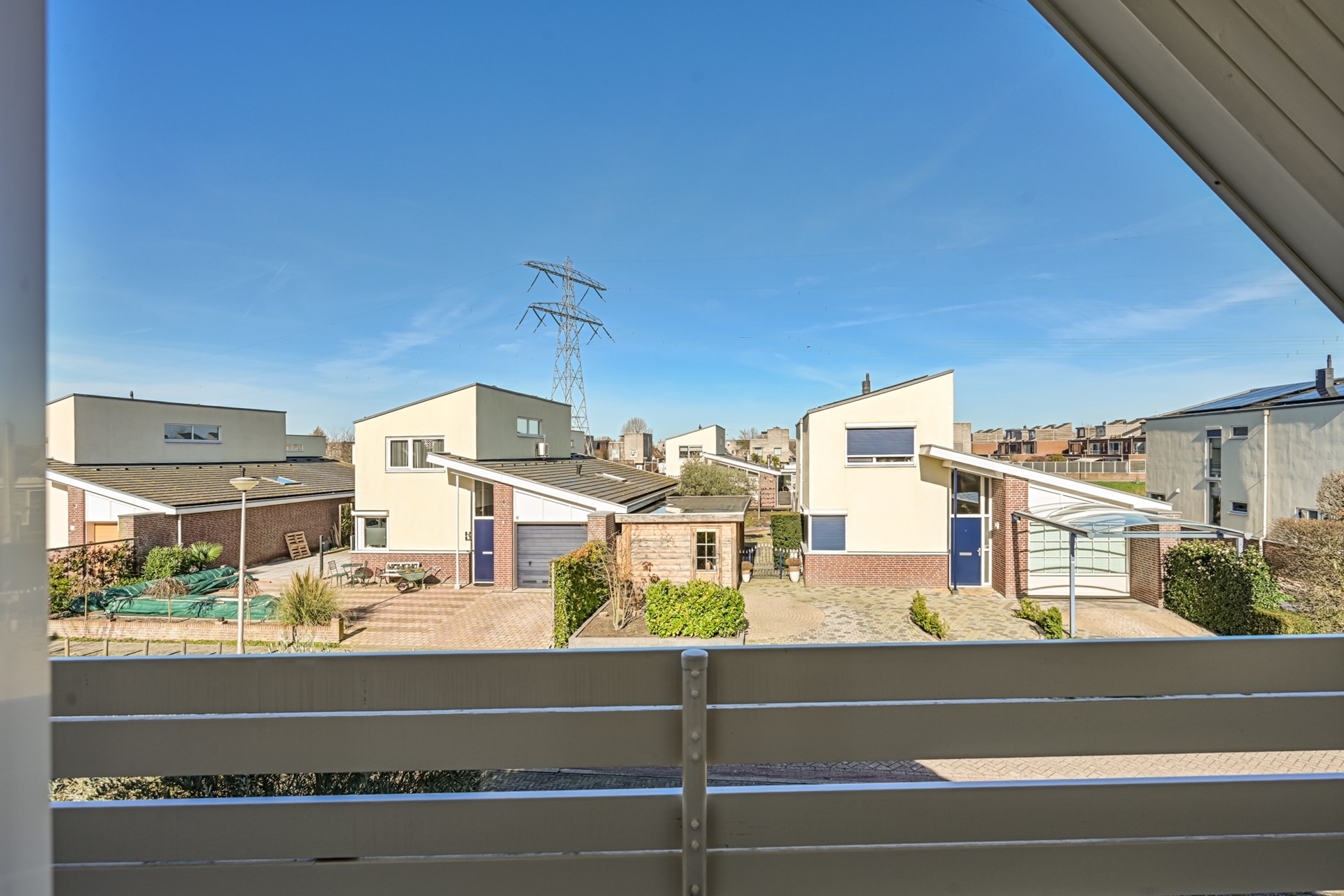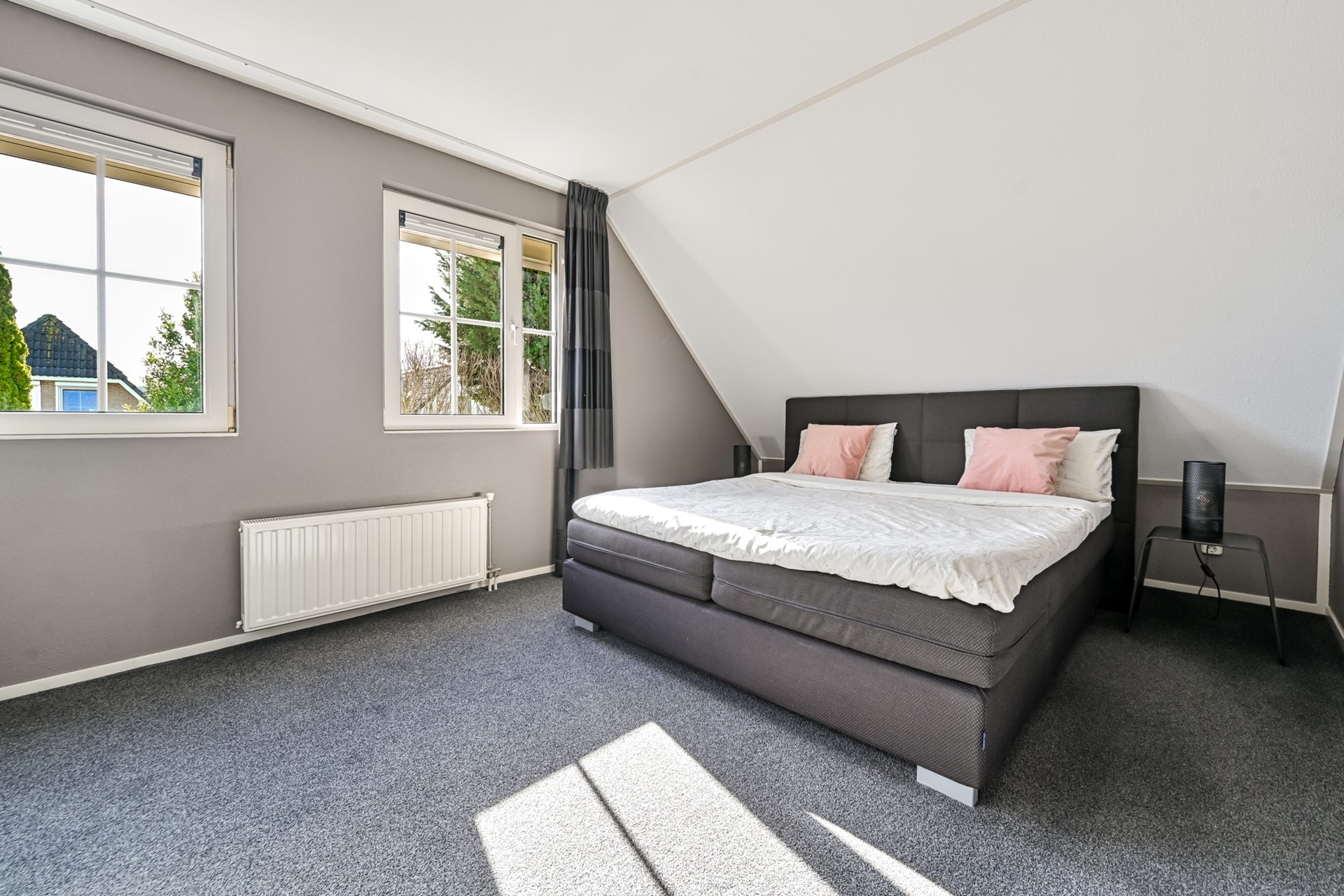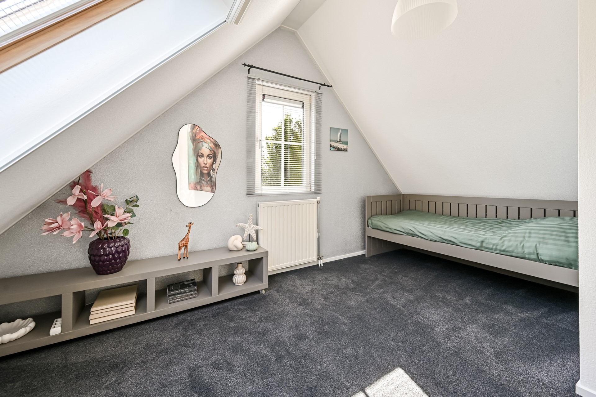 De slaapkamer aan de voorzijde van de woning is zeer ruim en voorzien van een dakraam. Vanuit deze kamer heb je directe toegang tot de sfeervolle loggia, gelegen op het noordwesten, een heerlijke plek om te genieten van de avondzon en de fijne omgeving.
