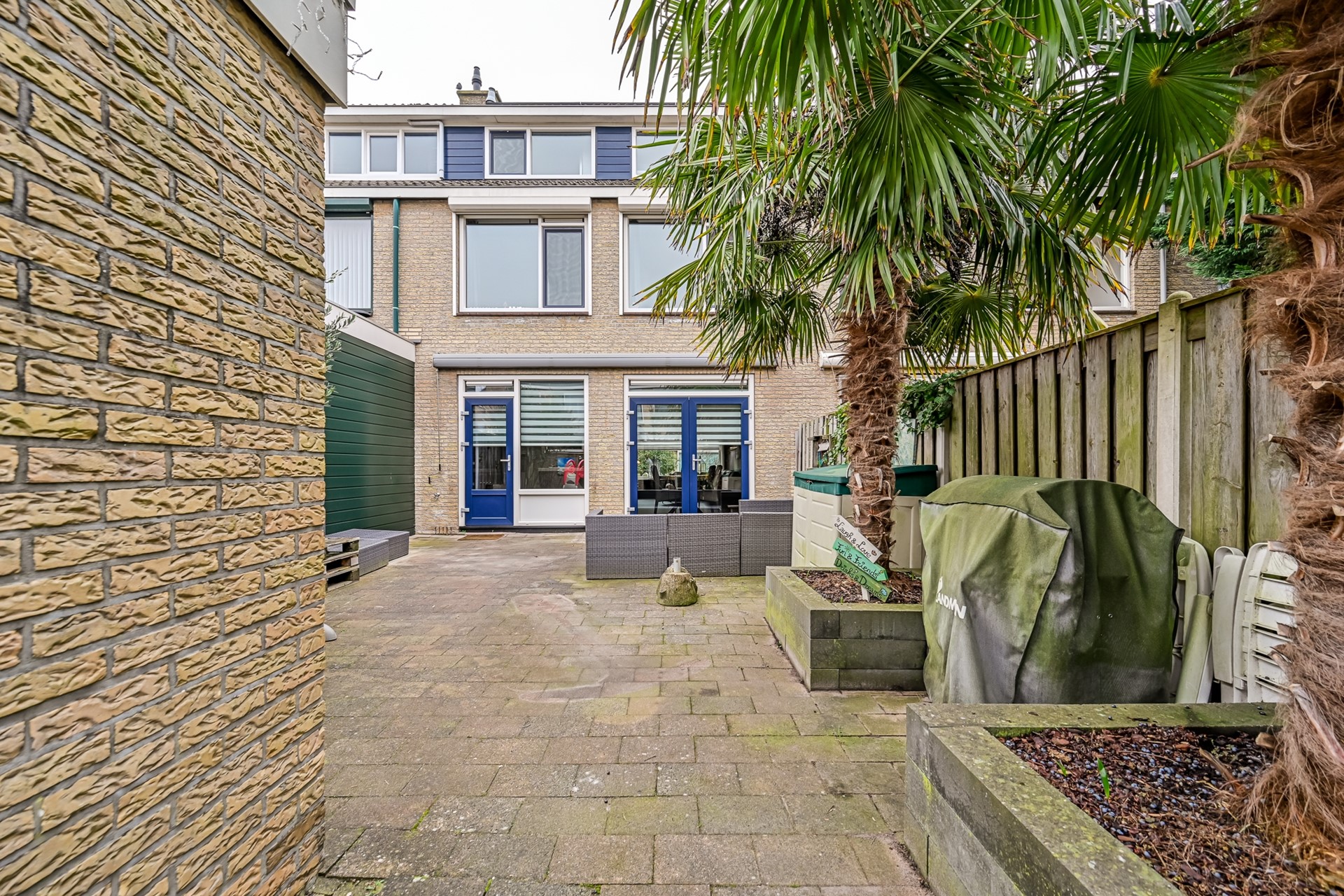 Zowel via de tuindeur als via de openslaande pui in de woonkamer bereik je de zonnige achtertuin, gelegen op het zuidwesten. De ruime tuin is voorzien van een vrijstaande stenen berging, een achterom en een handmatig bedienbaar zonnescherm.