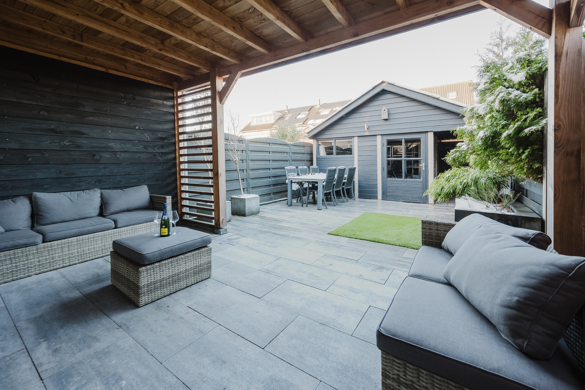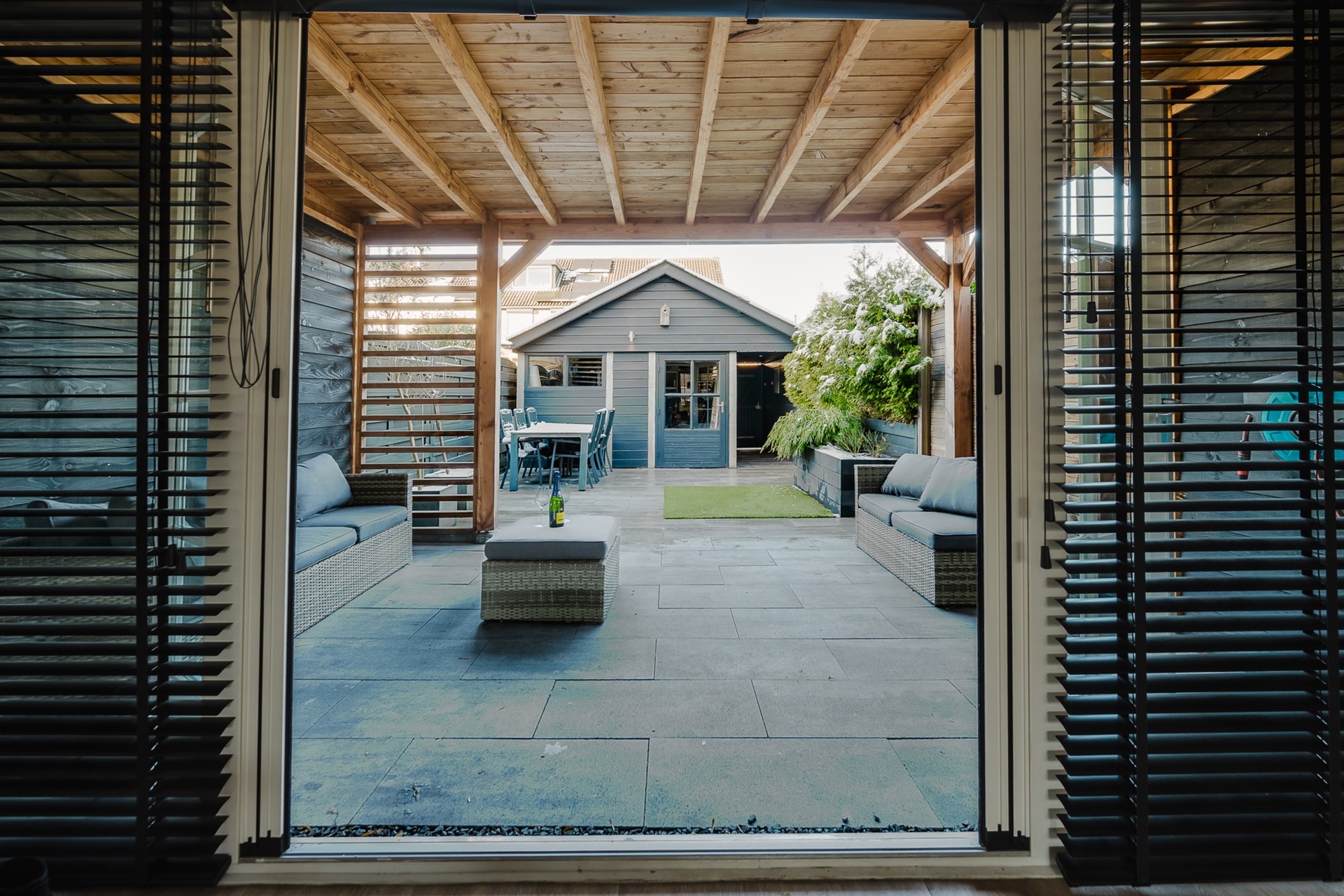De achtertuin is in 2021 aangelegd en beschikt over een overkapping en een grote schuur van circa 14 m², ideaal voor opslag, hobby’s of fietsen.