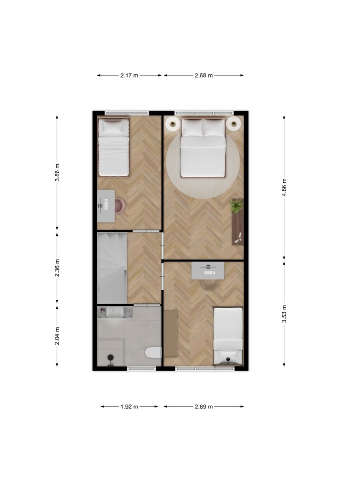 Op de eerste verdieping bevinden zich drie slaapkamers, allemaal netjes afgewerkt.